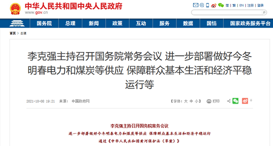 据中国政府网消息,国务院总理李克强10月8日主持召开国务院常务会议,进一步部署做好今冬明春电力和煤炭等供应,保障群众基本生活和经济平稳运行。此次会议罕见地提及“六保”这一去年疫情期间提出的重要精神,这意味着此次“能源供应”问题的站位相当高。