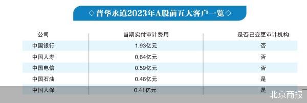 经同花顺(114.720, -1.93, -1.65%)iFinD统计,2023年,普华永道A股客户共107家,合计审计费用8.79亿元;大华所A股客户共411家,合计审计费用4.91亿元。